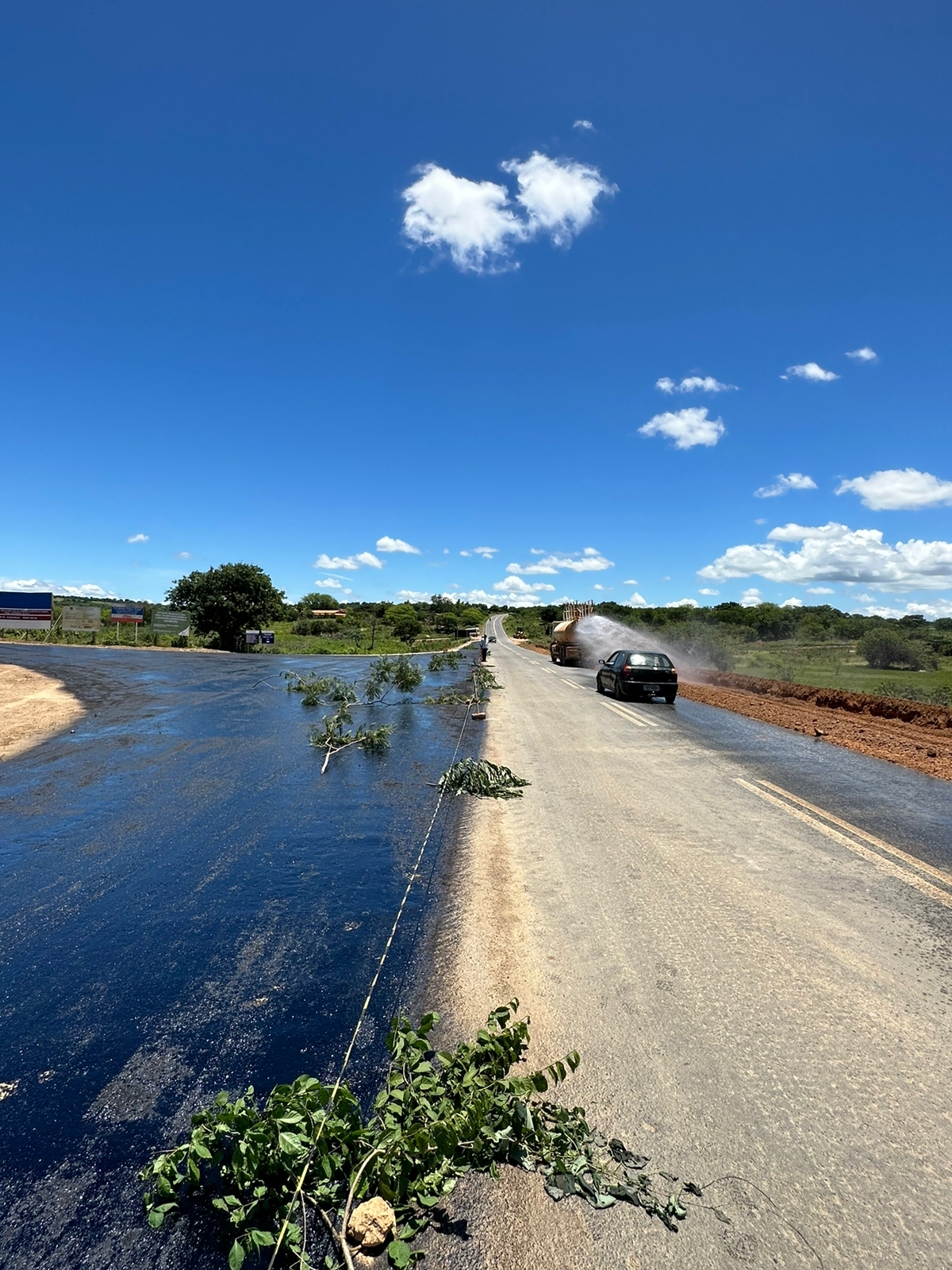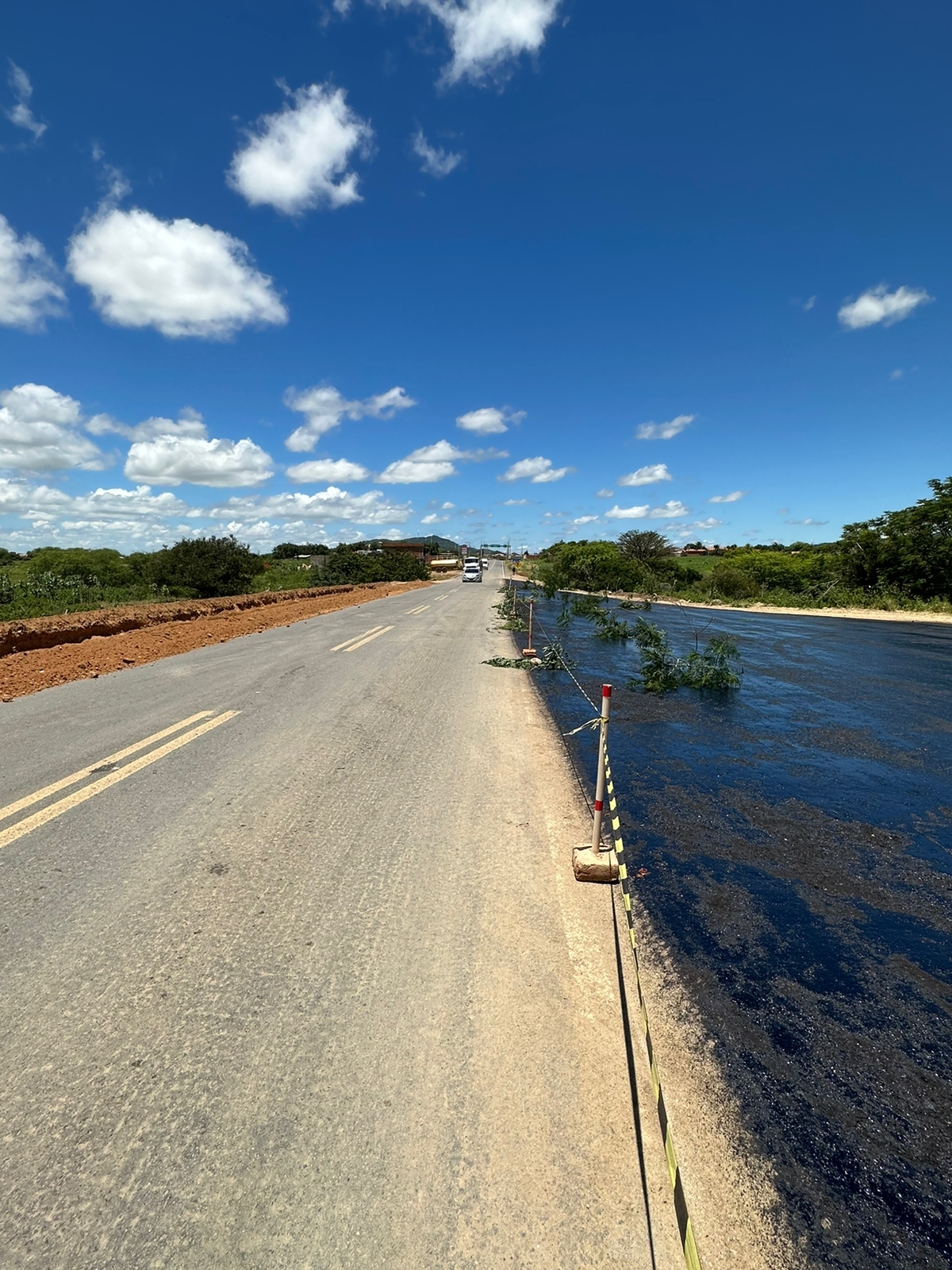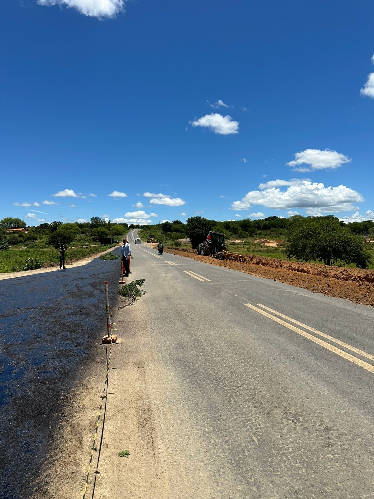 O Prefeito de Pindaí João Veiga celebrou a chegada de uma nova fase nos trabalhos da pavimentação asfáltica da estrada que liga Pindaí ao distrito de Guirapá, onde o asfalto propriamente dito deu um novo colorido ao trecho.