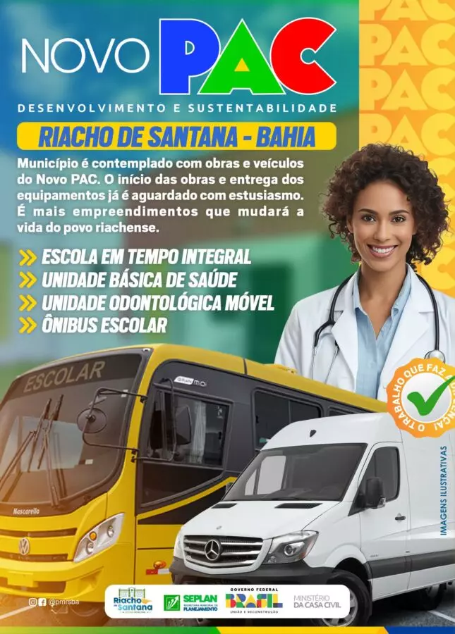 Graças a esse esforço e atuação da competente equipe técnica, Riacho de Santana foi contemplada com importantes obras do PAC 3, cuja seleção foi anunciada nessa quinta-feira (7), em solenidade no Palácio do Planalto.